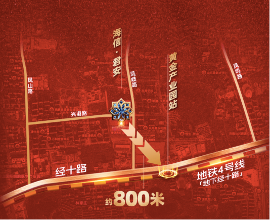 济南地铁线网纵横交错,但能与经十路并驾齐驱、贯穿全城精粹的,只有4号线。它沿经十路脉络而行,其站位与辐射力,是其它线路无法比拟的。海信·君安,距4号线黄金产业园站仅约800米,在“地下经十路”的黄金半径内,享有无可替代的通达力与资源占有力。